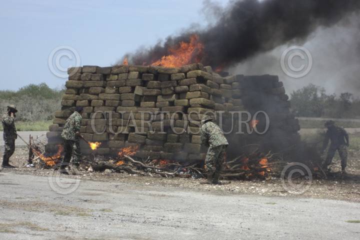 MTAMOROS, TAMAULIPAS., 04MAYO2011.- En el marco de las operaciones en contra del Narcotráfico y la delincuencia organizada que lleva a cabo la Secretaría de Marina–Armada de México, por conducto del Sector Naval de Matamoros en Tamaulipas, ayer por la tarde fueron incineradas más de 13 toneladas de marihuana, aseguradas en dos acciones distintas en operativos terrestres. FOTO: CUARTOSCURO.COM