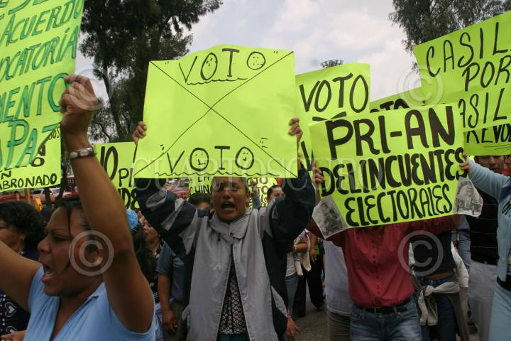 MEXICO, D.F. 24JULIO2006.- Simpatizantes de la Coalición Por el Bien de Todos se manifestaron con pancartas en favor del conteo del voto ante Enrique Peña Nieto, gobernador del Estado de México. FOTO: Nelly Salas/CUARTOSCURO.COM