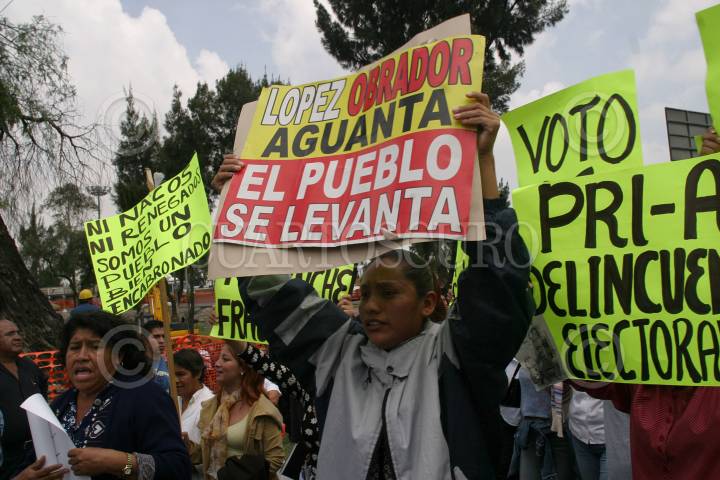 MEXICO, D.F. 24JULIO2006.- Simpatizantes de la Coalización Por el Bien de Todos se manifestaron en el conteo voto por voto durante la ceremonia del banderazo del inicio de los trabajos de construcción del distribuidor vial Zaragoza-Texcoco, en el marco de Comisión Ejecutiva de Coordinación Metropolitana. FOTO: Nelly Salas/CUARTOSCURO.COM