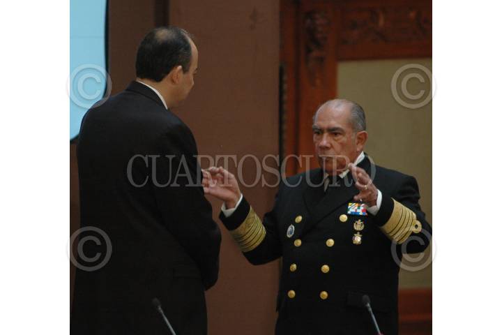 MÉXICO, D.F., 26NOVIEMBRE2009.- Arturo Chavez, procurador general de la República conversa con el almirante Francisco Saynez, secretario de Marina momentos antes de dar inicio la XXVII Sesión del Consejo Nacional de Seguridad Pública que se realizo en el Salón Tesorería de Palacio Nacional. FOTO: RODOLFO ANGULO/CUARTOSCURO.COM