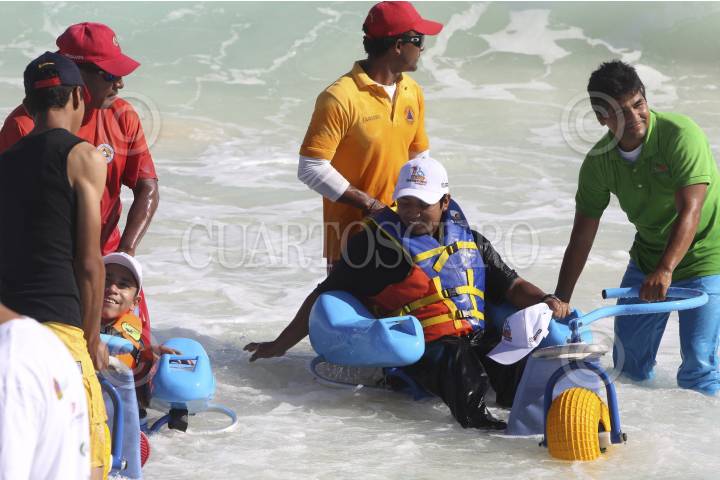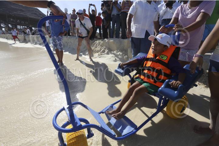 PLAYA DEL CARMEN, QUINTANA ROO, 13FEBRERO2013.- Se realizó la inauguración de la primera playa inclusiva del país para personas con capacidades diferentes en playa del Carmen. FOTO: CSPHOTO /CUARTOSCURO.COM