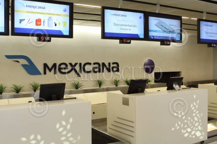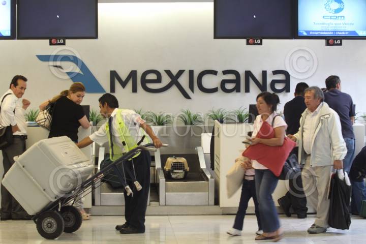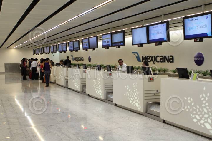 MÉXICO, D.F., 07AGOSTO2010.- Los trabajadores de la Compañía Mexicana de Aviación manifestaron su voluntad de ceder prestaciones, salario e incluso plazas, como vía para aligerar la crisis financiera de la aerolínea y evitar su posible cierre. Hasta el momento Mexicana de Aviación que se encuentra en concurso mercantil ha suspendido la venta de boletos, no así para sus filiales Mexicana Link y Mexicana Click que continúan operando de forma regular. En la imagen mostradores de la aerolínea Mexicana en el Aeropuerto Internacional de la Ciudad de México. FOTO: RODOLFO ANGULO/CUARTOSCURO.COM