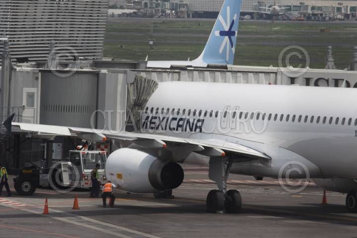 MÉXICO, D.F., 07AGOSTO2010.- Los trabajadores de la Compañía Mexicana de Aviación manifestaron su voluntad de ceder prestaciones, salario e incluso plazas, como vía para aligerar la crisis financiera de la aerolínea y evitar su posible cierre. Hasta el momento Mexicana de Aviación que se encuentra en concurso mercantil ha suspendido la venta de boletos, no así para sus filiales Mexicana Link y Mexicana Click que continúan operando de forma regular. En la imagen un avión de Mexicana de Aviación. FOTO: RODOLFO ANGULO/CUARTOSCURO.COM