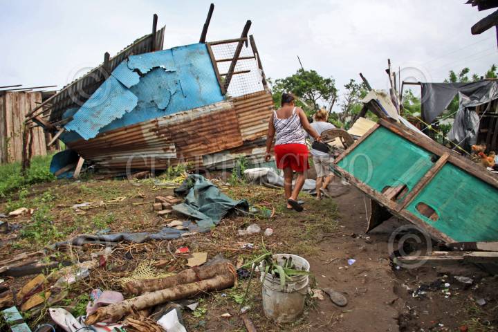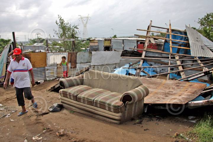 VERACRUZ, VERACRUZ., 17SEPTIEMBRE2010.- Decenas de familias de colonias irregulares de este puerto se quedaron sin vivienda después de que las violentas rachas derribaran los techos de lámina e incluso las pequeñas casas de cartón, por lo que sus habitantes tuvieron que alojarse en los distintos albergues ubicados en la ciudad. FOTO: FÉLIX MÁRQUEZ/CUARTOSCURO.COM