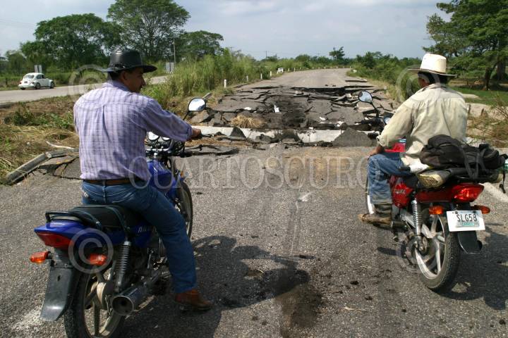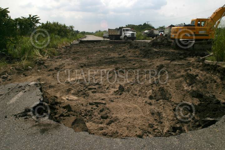 CUNDUACAN, TABASCO, 08NOVIEMBRE2007.- Diversas carreteras del estado de Tabasco estan totalmente deslavadas y dañadas despues de la fuerte inundación,dejando incomunicados por via terrestre a diversas rancherias y comunidades del estado. FOTO: SAÚL LÓPEZ/CUARTOSCURO.COM