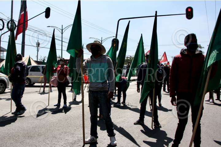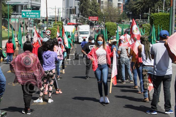 Integrantes de diversos asociaciones campesinas, durante bloqueo de Avenida Insurgentes. FOTO: ROGELIO MORALES /CUARTOSCURO.COM