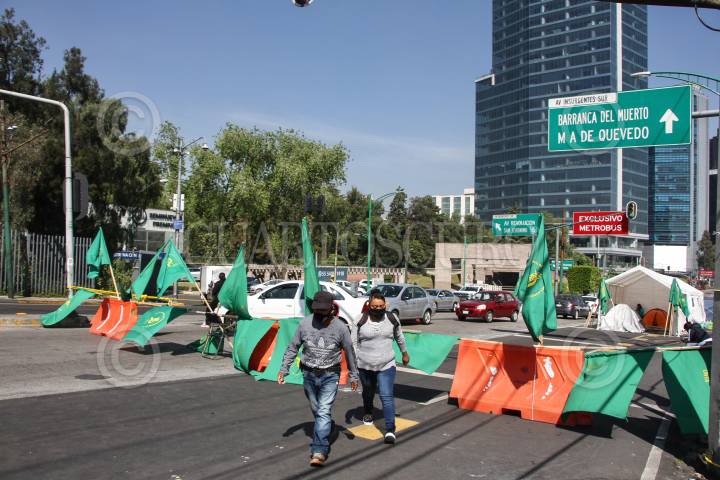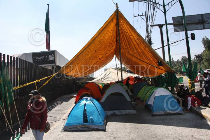 Con casas de campar y lonas provisionales se mantiene plantón en la sede de Conagua en Insurgentes. FOTO: ROGELIO MORALES /CUARTOSCURO.COM