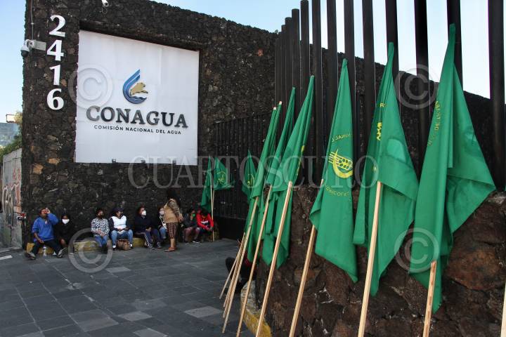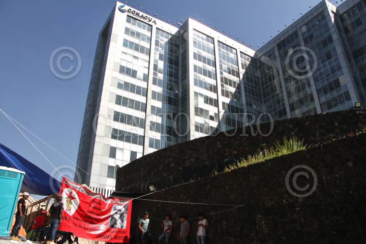Simpatizantes de diversas asociaciones campesinas mantienen plantón el las oficinas de Conagua. FOTO: ROGELIO MORALES /CUARTOSCURO.COM