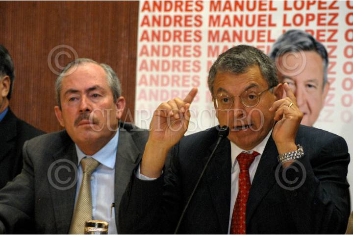 MÉXICO D.F. 05JULIO2006.- Leonel Cota Montaño, presidente nacional del PRD, Manuel Camacho Solis, durante la conferencia de prensa donde dieron a conocer inconsistencias que presenta el PREP en el conteo de los votos, de los comisios para presidente el pasado 2 de Julio. FOTO: Guillermo Perea/ CUARTOSCURO.COM