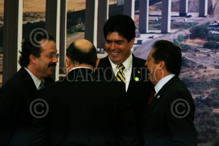 MÉXICO D.F., 01OCTUBRE2009.- Juan Molinar Horcasitas, Secretario de Comunicaciones y Transportes, (SCT) Mario Becerra Diputado del PAN, y Presidente de la Comisión de Hacienda, Tomas Torres Senador del PRD y José Trejo, Senador del PRI, durante el anuncio de las Reformas al Marco Legal y Acciones Para Incrementar el Financiamiento en Infraestructura, esto en las instalaciones de la Residencia Oficial de los Pinos. FOTO: GUILLERMO PEREA/CUARTOSCURO.COM