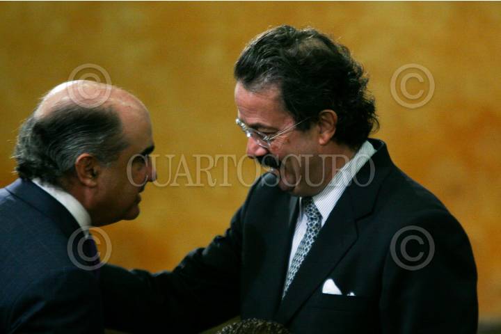 MÉXICO D.F., 01OCTUBRE2009.- Agustín Cartens Cartens, titular de la Secretaría de Hacienda y Crédito Publico (SHCP) saluda a Mario Becerra Pocoroba Diputado del PAN y presidente de la Comisió de Hacienda, al termino del anuncio de las Reformas al Marco Legal y Acciones Para Incrementar el Financiamiento en Infraestructura, esto en las instalaciones de la Residencia Oficial de los Pinos. FOTO: GUILLERMO PEREA/CUARTOSCURO.COM