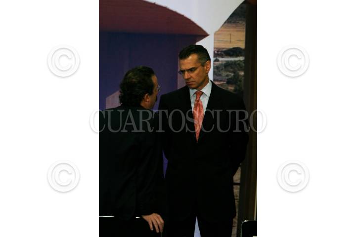 MÉXICO D.F., 01OCTUBRE2009.- Juan José Suárez Coppel, Director General de Petroleos Mexicanos, dialoga con Juan Molinar Horcasitas, Secretario de Comunicaciones y Transportes, (SCT) momentos antes del anuncio de las Reformas al Marco Legal y Acciones Para Incrementar el Financiamiento en Infraestructura, esto en las instalaciones de la Residencia Oficial de los Pinos. FOTO: GUILLERMO PEREA/CUARTOSCURO.COM