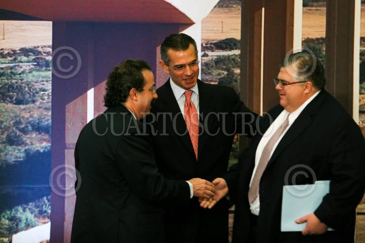 MÉXICO D.F., 01OCTUBRE2009.- Juan Molinar Horcasitas, Secretario de Comunicaciones y Transportes (SCT) Juan José Suárez Coppel, Director Genral de Petroleos Mexicanos y Agustín Cartens Cartens, titular de la Secretaría de Hacienda y Crédito Publico, (SHCP) momentos antes del anuncio de las Reformas al Marco Legal y Acciones Para Incrementar el Financiamiento en Infraestructura, esto en las instalaciones de la Residencia Oficial de los Pinos. FOTO: GUILLERMO PEREA/CUARTOSCURO.COM