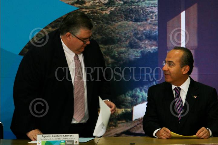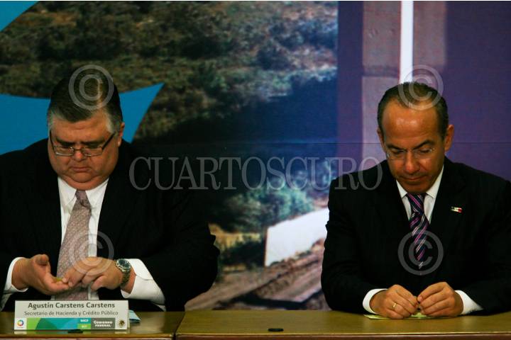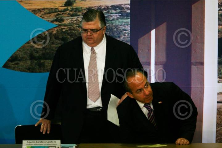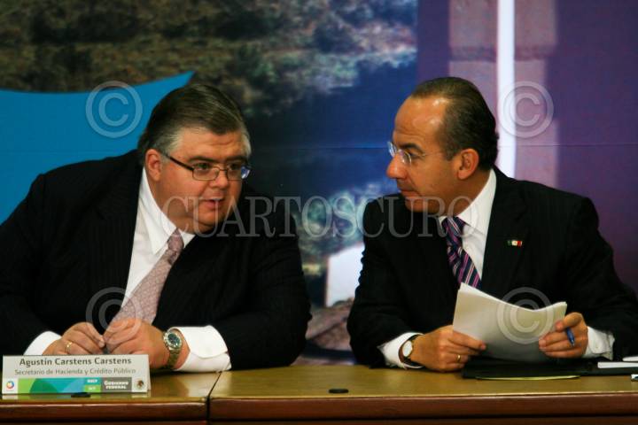 MÉXICO D.F., 01OCTUBRE2009.- Felipe Calderón Hinojosa, Presidente de México, en compañía de Agustín Cartens Cartens, titular de la Secretaría de Hacienda y Crédito Publico, (SHCP) realizó el anuncio de las Reformas al Marco Legal y Acciones Para Incrementar el Financiamiento en Infraestructura, esto en las instalaciones de la Residencia Oficial de los Pinos. FOTO: GUILLERMO PEREA/CUARTOSCURO.COM