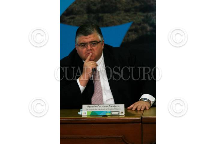 MÉXICO D.F., 01OCTUBRE2009.- Agustín Cartens Cartens, titular de la Secretaría de Hacienda y Crédito Publico, (SHCP) durante el anuncio de las Reformas al Marco Legal y Acciones Para Incrementar el Financiamiento en Infraestructura, esto en las instalaciones de la Residencia Oficial de los Pinos. FOTO: GUILLERMO PEREA/CUARTOSCURO.COM