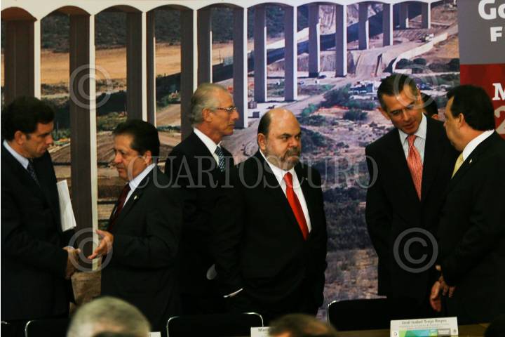 MÉXICO D.F., 01OCTUBRE2009.- Alonso García Tamés, Director General de Banobras, José Trejo, Senador del PRI, Luis Fernando Zárate Rocha, Presidente del Colegio de Ingenieros Civiles, Mario Becerra, Diputado del PAN y Juan José Suárez Coppel, Director General de Petroleos Mexicanos, al termino del anuncio de las Reformas al Marco Legal y Acciones Para Incrementar el Financiamiento en Infraestructura, esto en las instalaciones de la Residencia Oficial de los Pinos. FOTO: GUILLERMO PEREA/CUARTOSCURO.COM