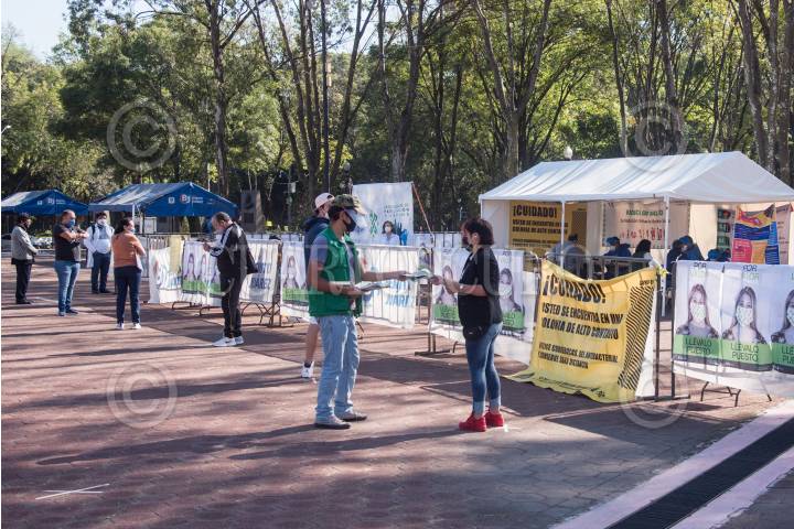 Vecinos de la colonia Santa Cruz Atoyac continúan asistiendo a realizarse la prueba PCR para la detección de coronavirus (covid-19) en el "kiosco" de atención ubicado en la explanada principal de la Alcaldía Bénito Juárez.