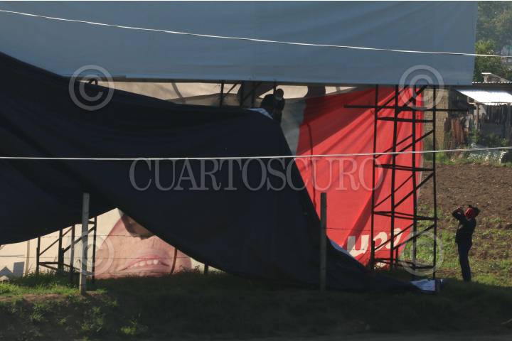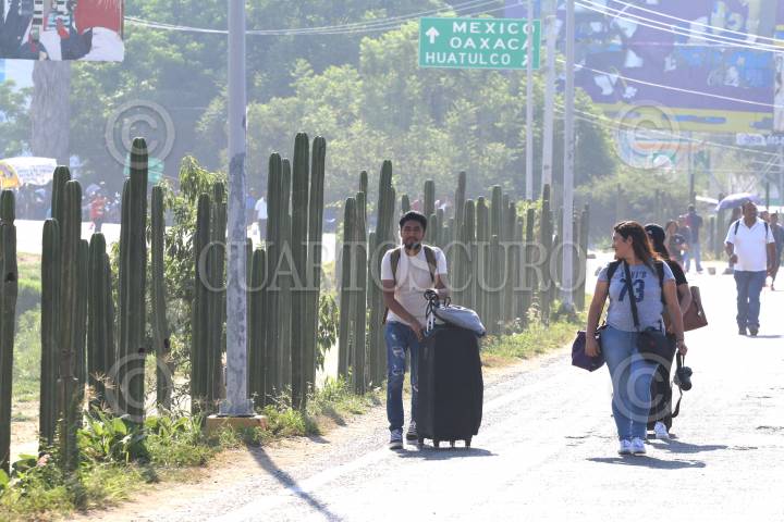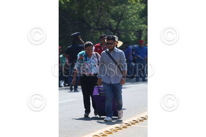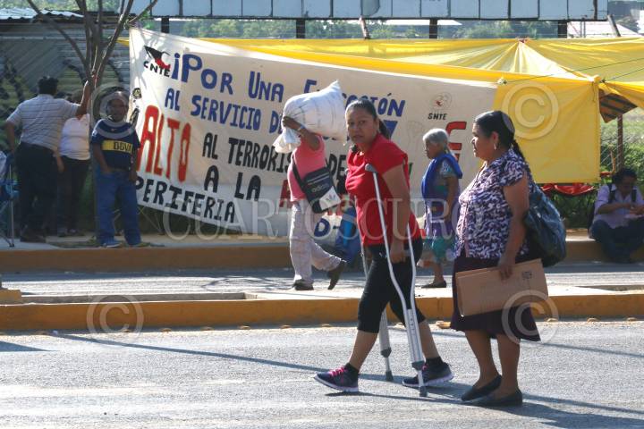 OAXACA, OAXACA, 30MAYO2018.- Integrantes de la sección 22 de la Coordinadora Nacional de los Trabajadores de la Educación (CNTE) iniciaron su tercer día de protestas luego de que el pasado lunes iniciaron un paro indefinido de labores. Los mentores tomaron las instalaciones del aeropuerto internacional de Santa Cruz Xoxocotlán, pasajeros se brincaron la valla perimetral del parque Bosque el Tequila para poder acceder a la terminal. Un grupo de profesores retiraron propaganda electoral en los alrededores del aeropuerto. FOTO: ARTURO PÉREZ ALFONSO/ CUARTOSCURO.COM