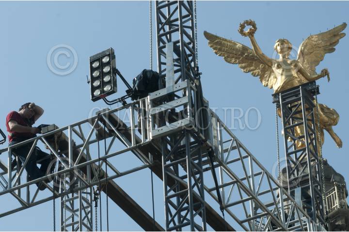 MÉXICO, D.F., 30DICIEMBRE2011.- Paseo de la Reforma se encuentra la mañana de hoy cerrado en sus carriles centrales, desde el Angel de la Independencia hasta la Glorieta de la Palma, debido a la colocación de vallas, luces y sonido para los festejos del día de mañana para recibir el año 2012 con una verbena popular donde actuaran Yuri y Merenglass. FOTO: FRANCISCO RODRÍGUEZ/CUARTOSCURO.COM