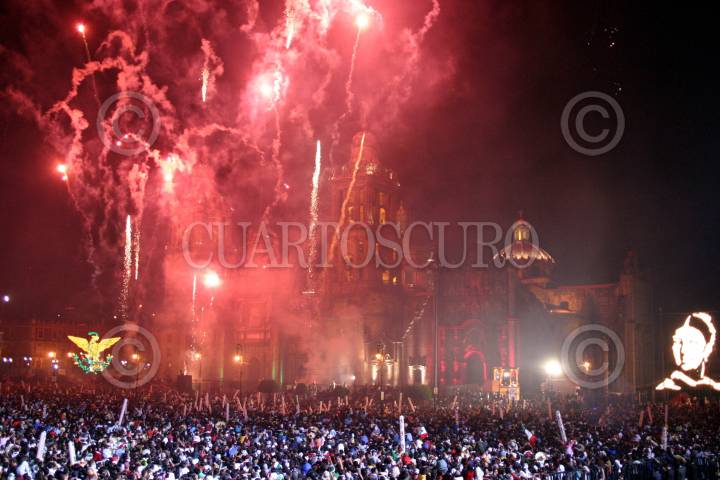 MEXICO, D.F., 15SEPTIEMBRE2005.- Aspecto de la berbena popular que se vivió en la plancha del Zócalo durante el grito de la Independecia. FOTO: Moisés Pablo/CUARTOSCURO.COM