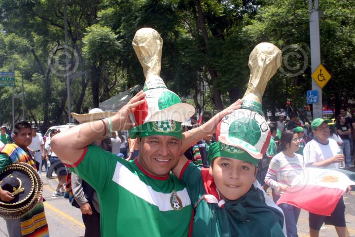 MÉXICO, D.F 11JUNIO2006.- Miles de Aficionados que aprovecharon para llevar a sus mascotas, se dieron cita en el Angel de la Independencia, para celebrar la victoria de la Selección Nacional, ante su similar de Iran 3-1, en su primera participación en el mundial de Alemania 2006. FOTO: Pedro Kristian López/CUARTOSCURO.COM