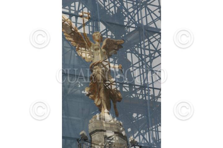 MEXICO, D.F., 08SEPTIEMBRE2006.- El Angel de la Independencia luce despejado de los andamios que varios meses lo rodearon para su remosamiento, aunque los trabajos continuan en el basamento los capitalinos volvemos a apreciar uno de los simbolos más representativos para los defeños. FOTO: MOISÉS PABLO/CUARTOSCURO.COM