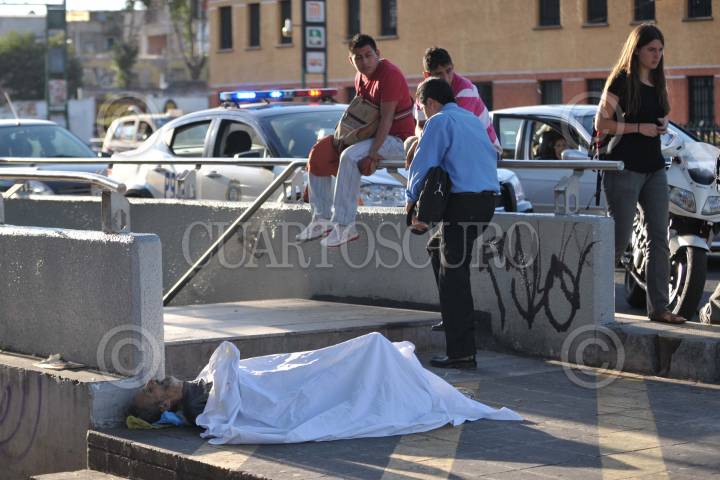MÉXICO D.F., 26ABRIL2010.- Una persora de la tercera edad en situacion de calle perdió la vida por enfermedad a las afueras del metro Guerrero de la linea 3 en la colonia Guerrero. FOTO: SAÚL LÓPEZ/CUARTOSCURO.COM