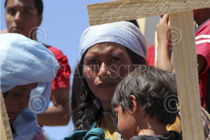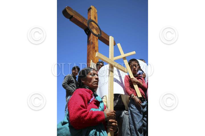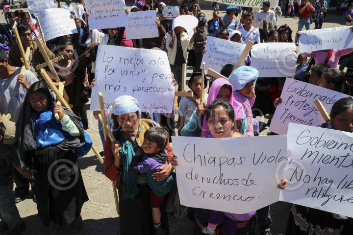 SAN CRISTÓBAL DE LAS CASAS, 21MARZO2014.- Un grupo de tzotziles evangélicos desplazados de la comunidad de Banavil, municipio de Tenejapa y de Los Llanos, municipio de San Cristóbal, exigieron al gobierno del Estado que intervenga para su reubicación después de cuatro años de haber sido expulsados de sus comunidades. El número de desplazados asciende a 110, entre ellos niños, mujeres y adultos. FOTO: ELIZABETH RUIZ /CUARTOSCURO.COM