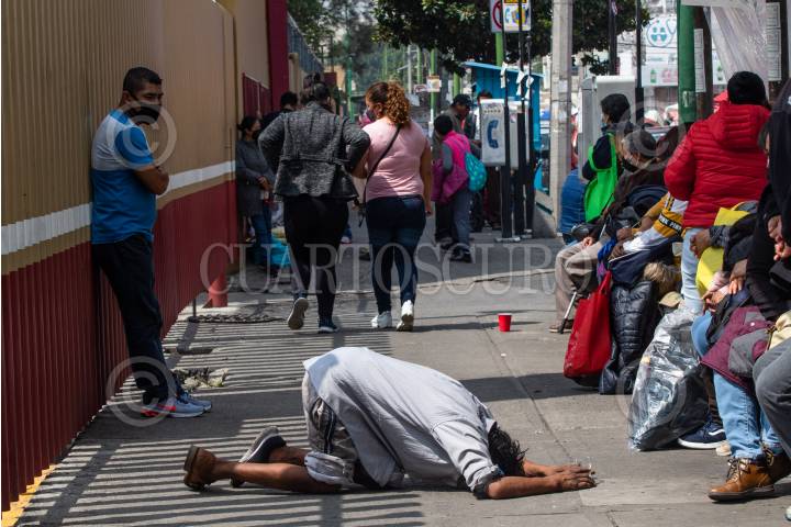 Un hombre reza a cambio de ayuda económica en las inmediaciones del Hospital General de México.