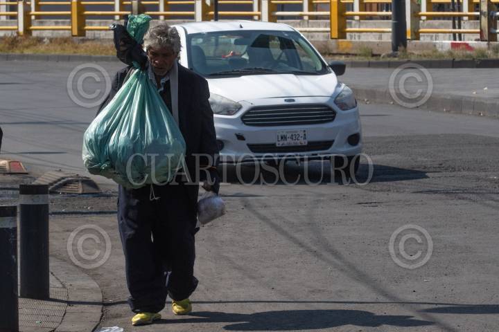 Hombre que no tiene casa utiliza de dormitorio el puente peatonal de Circuito Interior, a la altura del IPN.