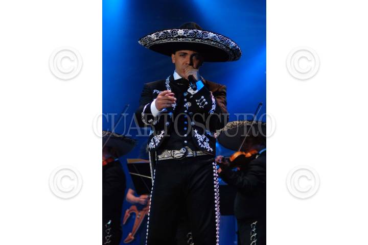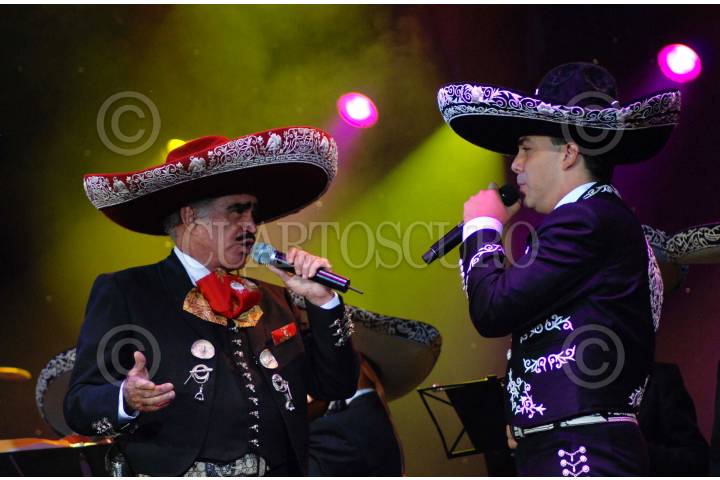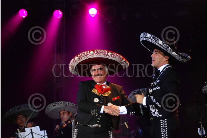 GUADALAJARA, JALISCO, 06SEPTIEMBRE2007.- Vicente Fernández y Cristian Castro, durante la presentación del nuevo disco de corte ranchero del hijo de Veronica Castro titulado "El Indomable", el espectaculo se realizó en el rancho "Los Tres Potrillos" FOTO: CLAUDIA ARECHIGA/CUARTOSCURO.COM