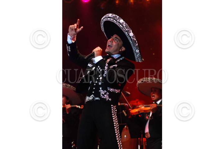 GUADALAJARA, JALISCO, 06SEPTIEMBRE2007.- Vicente Fernández y Cristian Castro, durante la presentación del nuevo disco de corte ranchero del hijo de Veronica Castro titulado "El Indomable", el espectaculo se realizó en el rancho "Los Tres Potrillo" FOTO: CLAUDIA ARECHIGA/CUARTOSCURO.COM