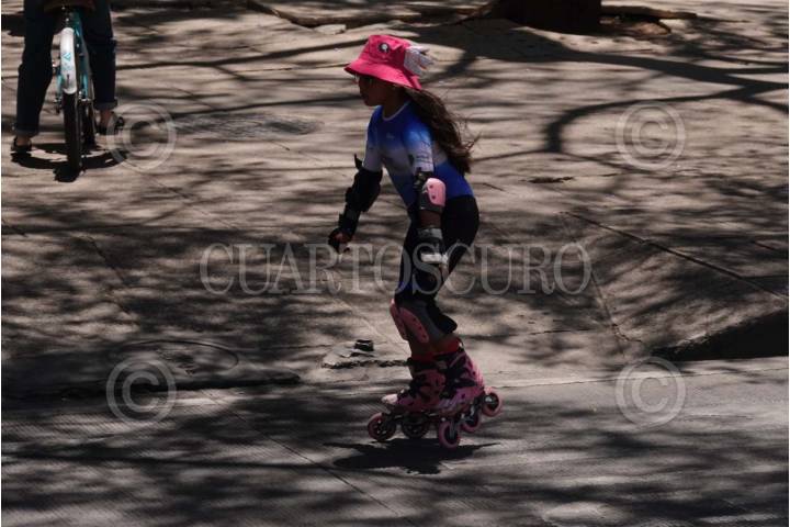CIUDAD DE MÉXICO, 13ABRIL2025.- Una niña se deslizó en patines durante el Paseo Dominical Muévete en Bici en Avenida Reforma. FOTO: GRACIELA LÓPEZ/CUARTOSCURO.COM