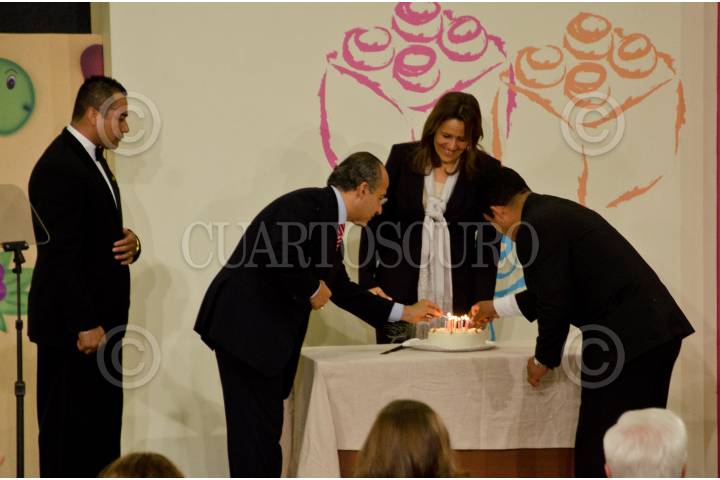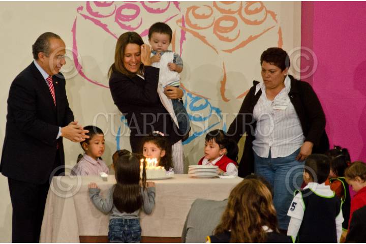 MÉXICO, D.F., 25JULIO2011.- Felipe Calderón Hinojosa, presidente de México, festejó a su esposa y presidenta del DIF-Nacional, Margarita Zavala de Calderón por su cumpleaños 44 durante la ceremonia de entrega del reconocimiento "800 mil niños beneficiados" en las estancias infantiles que se realizó en la residencia oficial de Los Pinos. FOTO: MISAEL VALTIERRA/CUARTOSCURO.COM