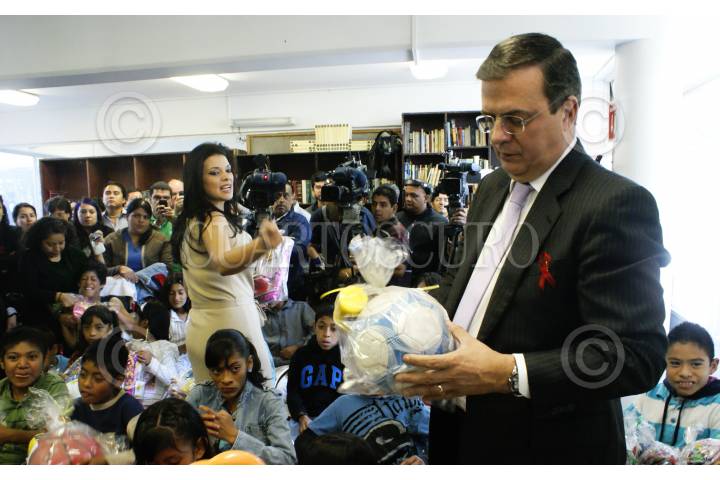 MEXDF 23ABRIL2012.- El Jefe de Gobierno del Distrito Federal, Marcelo Ebrard Casaubon, visitó la Fundación Ser Humano Internacional acompañado de su esposa; Rosalinda Buezo y el Secretario de Salud Armando Ahued, para celebrar previamente el día del niño en esta casa-refugio de niños con VIH, donde ademas repartió dulces y juguetes. El Director Lázaro Hernández Higuera aprovecho esta visita para solicitarle apoyo económico. FOTO: NIMROD CRUCES /CUARTOSCURO.COM