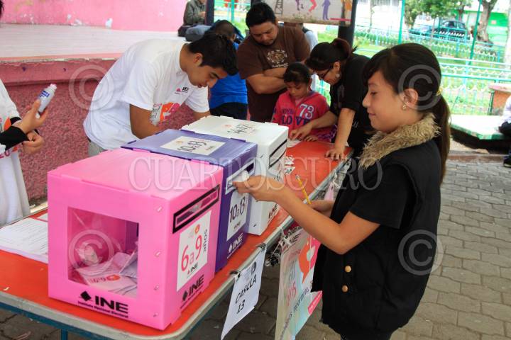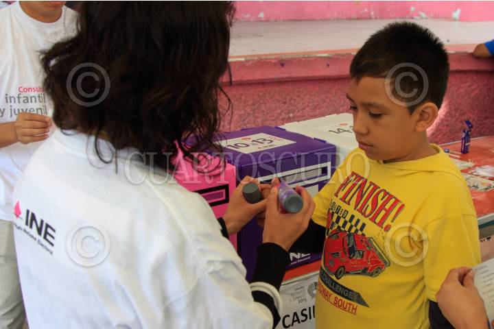 MÉXICO, D.F., 07JUNIO2015.- Miles El instituto Nacional Electoral coloco en las principales plazas públicas casillas infantiles para fomentar el voto electoral cuando los niños la mayoría de edad. FOTO: SAÚL LÓPEZ /CUARTOSCURO.COM