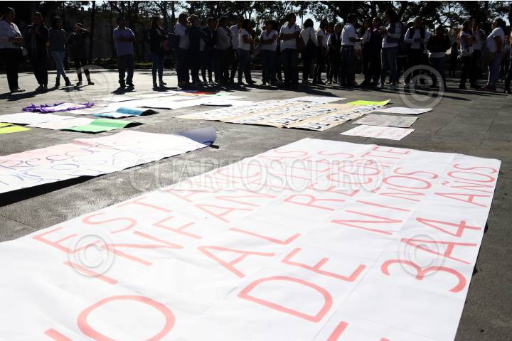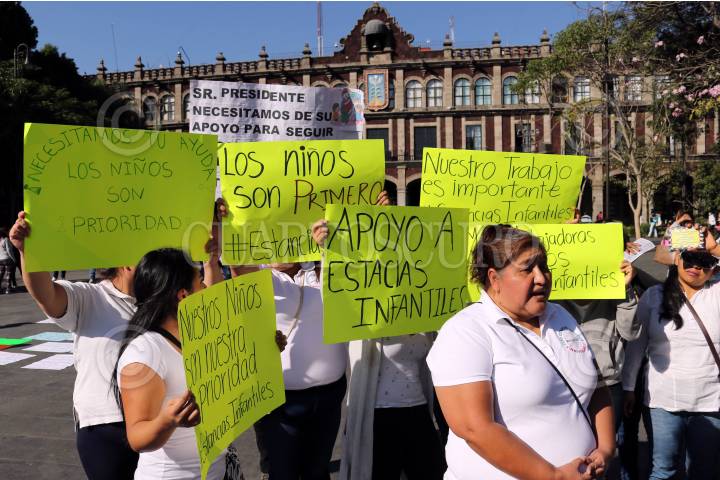 CUERNAVACA, MORELOS, 29ENERO2019.- Trabajadoras de estancias infantiles y madres de familia protestaron en la Plaza de Armas de esta ciudad por el recorte presupuestal que provocará que niños de tres y cuatro años ya no puedan acudir a estos centros de cuidado y enseñanza. FOTO: MARGARITO PÉREZ RETANA /CUARTOSCURO.COM