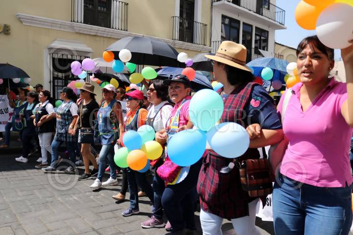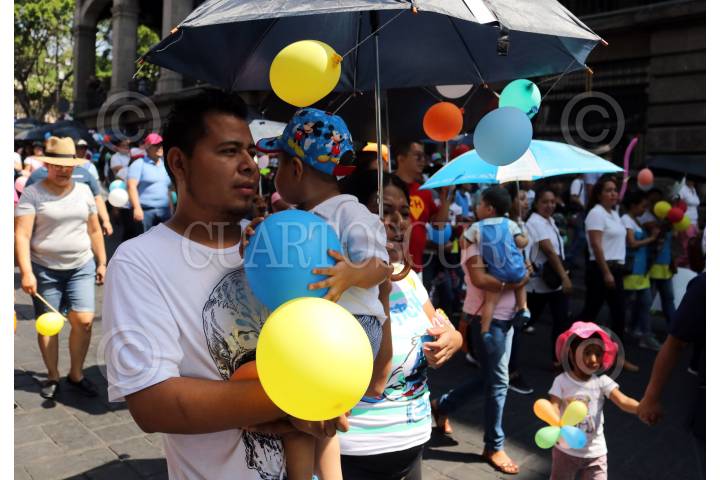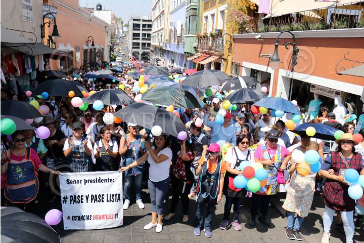 CUERNAVACA, MORELOS, 10MARZO2019.-Trabajadoras de estancias infantiles y padres de familia que usan ese servicio marcharon desde dos puntos de la ciudad hacia el zócalo de la ciudad, donde leyeron un pronunciamiento donde piden al presidente Andrés Manuel López Obrador, reconsidere su decisión de cerrar estos centros educativos. FOTO: MARGARITO PÉREZ RETANA /CUARTOSCURO.COM