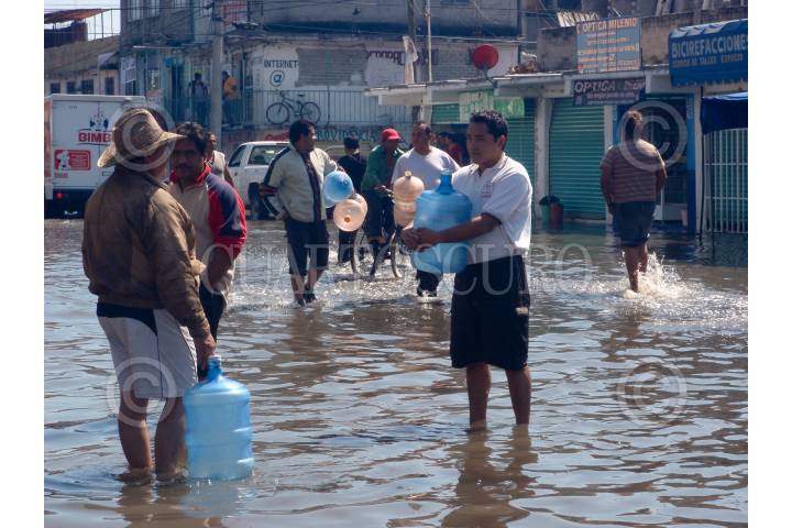 MÉXICO, D.F., 08FEBRERO2010.- Vecinos de la colonia Impulsora en espera de ayuda y agua potable en calles principales. Para llevar este liquido a sus familiar que quedaron atrapadas en sus hogares entre las aguas negras del canal del Río de los Remedios. FOTO: GUADALUPE CARRILLO/CUARTOSCURO.COM