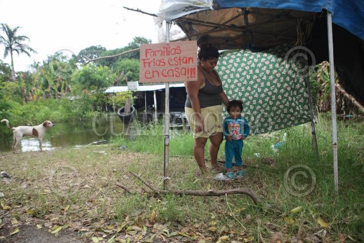 La familia Frías que viven en la ranchería El Guacimo denuncia que a ellos no les ha llegado ayuda, ni del gobierno local o federal, además de que varios miembros de su clan ya presentan infecciones en los pies, por el constante contacto con el agua sucia de las inundaciones.