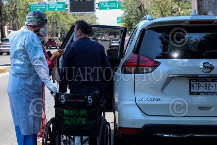 Familiares saludan a sus pacientes que se están siendo atendidos de Covid-19, en el Hospital de Infectología de la Raza.