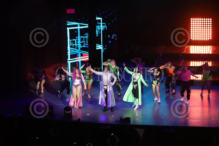 Kimberly Loaiza y Juan de Dios Pantoja durante su presentación en el Palacio de los Deportes con su Bye Bye Tour.