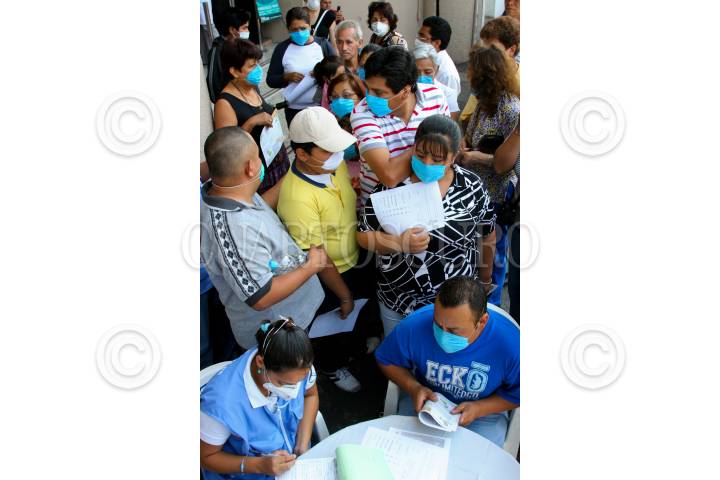 MÉXICO, D.F., 29ABRIL2009.- Un modulo de la llamada caravana de la salud fue ubicado en el estacionamiento de un supermercado, a diez minutos de su llegada decenas de capitalinos hicieron colas y tumulto para ser atendidos y revisados por los doctores, a pesar de que estas caravanas llevan pruebas para detectar influenza de tipo a y b solo son aplicadas a aquellas personas que lleguen con mas de un síntoma o fiebre muy alta, ademas los capitalinos buscan desesperada mente tapabocas que están agotados en estos puestos y en todo el país. FOTO: RICARDO CASTELAN/CUARTOSCURO.COM