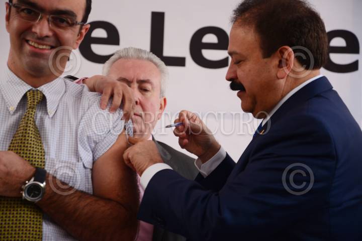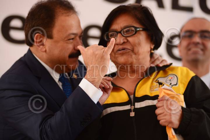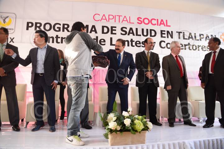 MÉXICO, D.F., 15DICIEMBRE2014.- El secretario de salud Armando Ahued Ortgea y Michel Devlin, presidieron esta mañana el programa de salud en Tlalpan Entrega de lentes y cobertores, en el cual, el secretario entrego lentes y cobertores a algunos de los beneficiados con este programa, ópticas Devlin fue la empresa encargada de la fabricación de lentes y realización de los estudios para las personas con problemas de visión, así también por cada par de lentes que compró el gobierno del Distrito Federal, Devlin entrego un par mas. La inversión del estado para dicho proyecto fue de 500 mil pesos. Se realizo también la vacuna contra la influenza. FOTO: ISABEL MATEOS /CUARTOSCURO.COM
