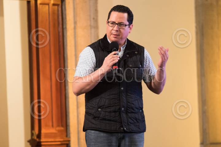 CIUDAD DE MÉXICO, 18DICIEMBRE2024.- Miguel Ángel Elorza Vázquez, coordinador de INFODEMIA, durante la conferencia del pueblo en el Salón Tesorería en Palacio Nacional. FOTO: GRACIELA LÓPEZ/CUARTOSCURO.COM
