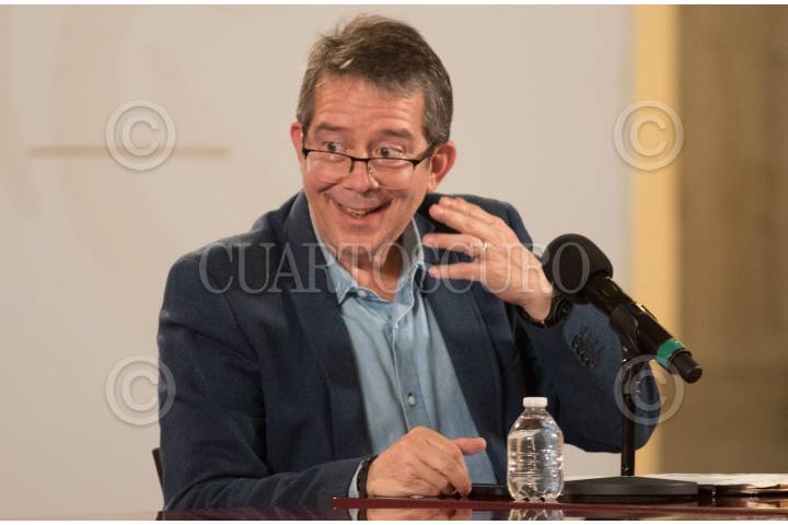 CIUDAD DE MÉXICO, 26MÉXICO2025.- Miguel Ángel Elorza, periodista y coordinador de la iniciativa Infodemia, durante su participación en la Conferencia del pueblo realizada en Palacio Nacional. FOTO: GRACIELA LÓPEZ/CUARTOSCURO.COM