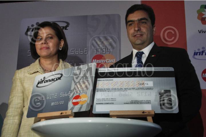 MÉXICO, D.F., 08OCTUBRE2012.- Rosalinda Velez, Secretaria del Trabajo y Prevision Social junto a Gabriel Ramírez Fernández, director del Infonacot durante la presentación de la Nueva Tarjeta Fonacot y sus beneficios que tuvo lugar en el club de banqueros de la ciudad de México. FOTO: ENRIQUE ORDOÑEZ /CUARTOSCURO.COM