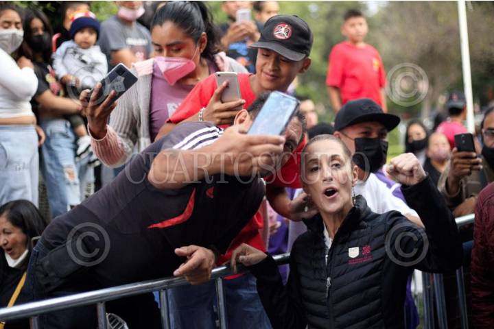 Claudia Sheinbaum, jefa de Gobierno, realizó en el Jardín Santiago Xicoténcatl su gira de trabajo con vecinos de la colonia Álamos de la alcaldía Benito Juárez, en la que informó sus principales acciones realizadas durante su gobierno.