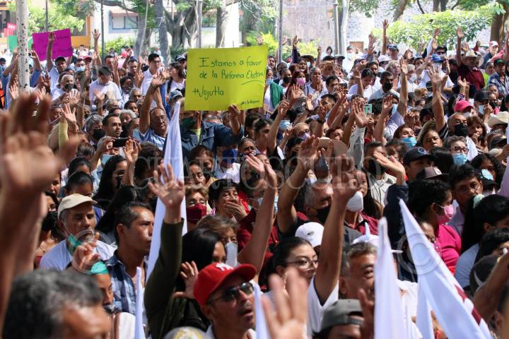 Asamblea Informativa sobre la Reforma Electoral realizada en la plaza de armas de Cuernavaca.