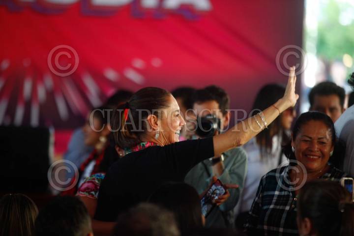 Claudia Sheinbaum, aspirante a la coordinación en defensa de la cuarta transformación del partido político Morena, durante su asamblea informativa en Jalisco.